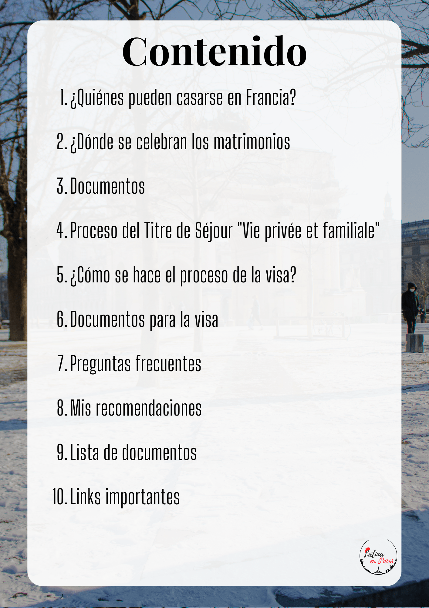 En este Ebook encontraran toda la información que necesitan para poder casarte en Francia y el proceso obtener el titre de séjour «Vie privée et familiale».