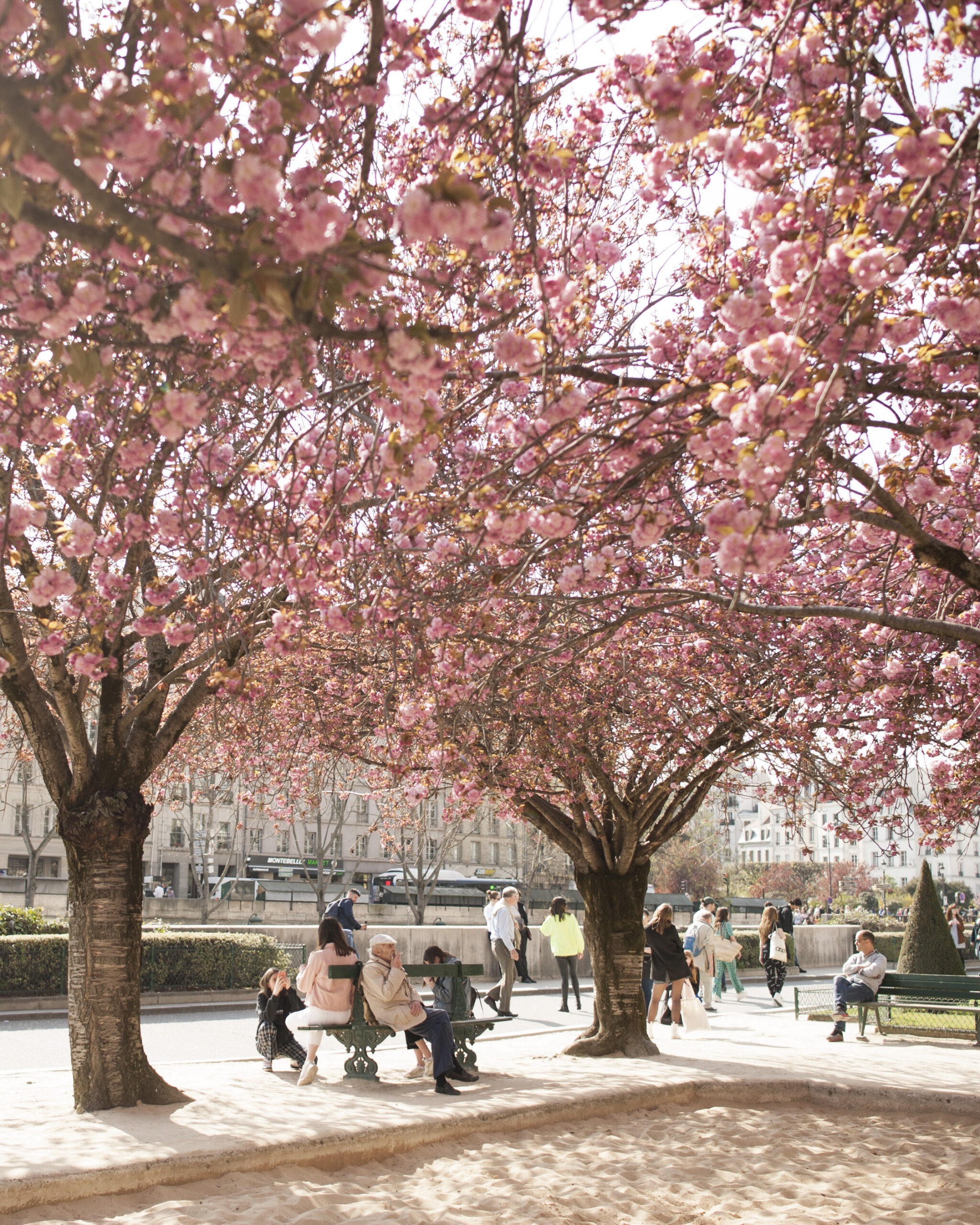 En la época de los cherry blossoms, solo hay un pequeño árbol pero también le da un encanto distinto al lugar. En verano es bastante concurrido entre los parisinos para poder disfrutar el buen clima con amigos, así que se los recomiendo en primavera-verano.
